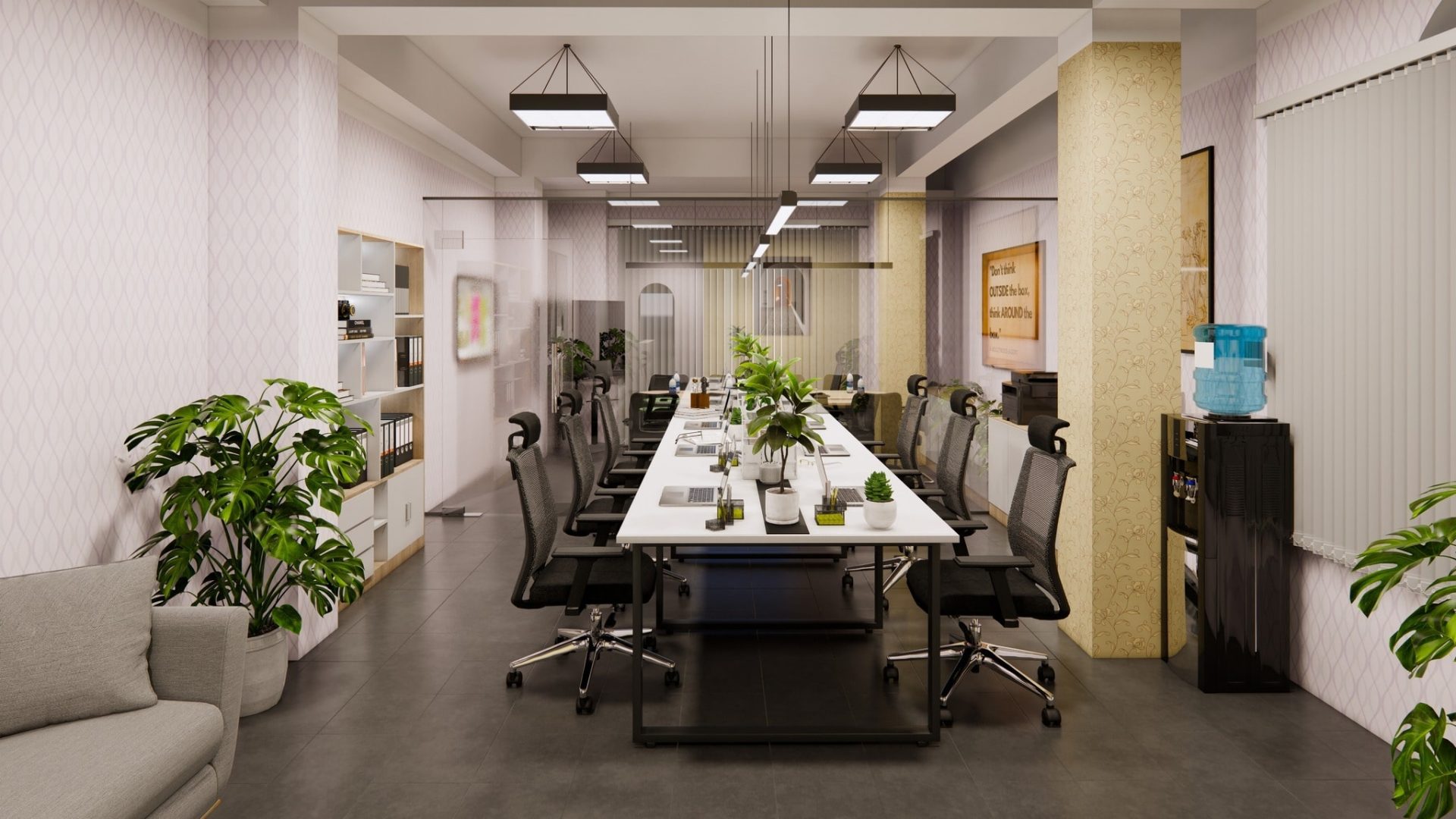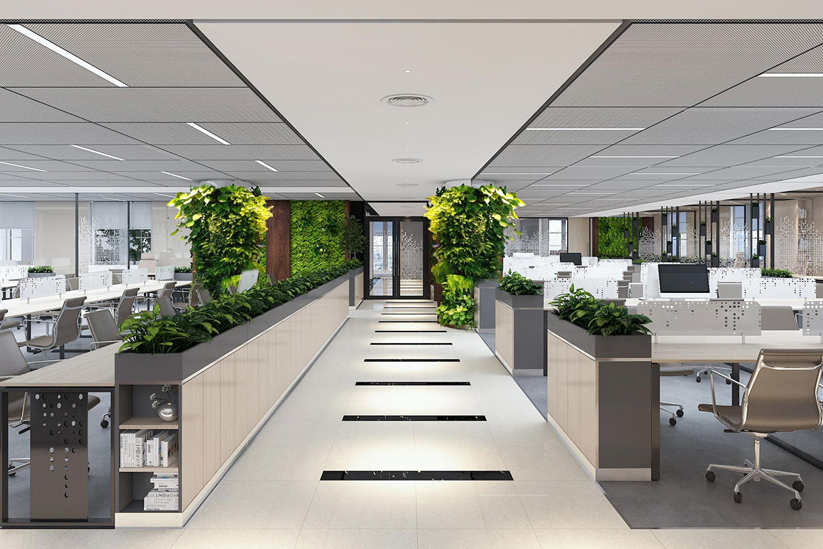 Văn phòng nên có ánh sáng tự nhiên, không gian thoáng, dễ bố trí bàn làm việc và phòng họp. Không gian thoải mái giúp nhân viên tập trung và sáng tạo hơn.