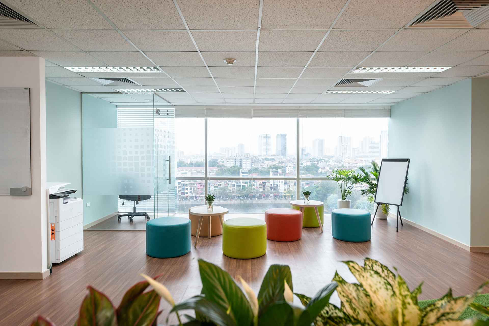Ánh sáng tự nhiên giúp văn phòng trở nên rộng rãi, thoáng đãng, tạo cảm giác mở và thoải mái hơn. Không gian này thúc đẩy sự sáng tạo và giao tiếp giữa các nhân viên. Các khu vực họp nhóm hay coworking space gần cửa sổ thường được ưa chuộng vì mang lại cảm giác năng động, dễ dàng trao đổi ý tưởng.
